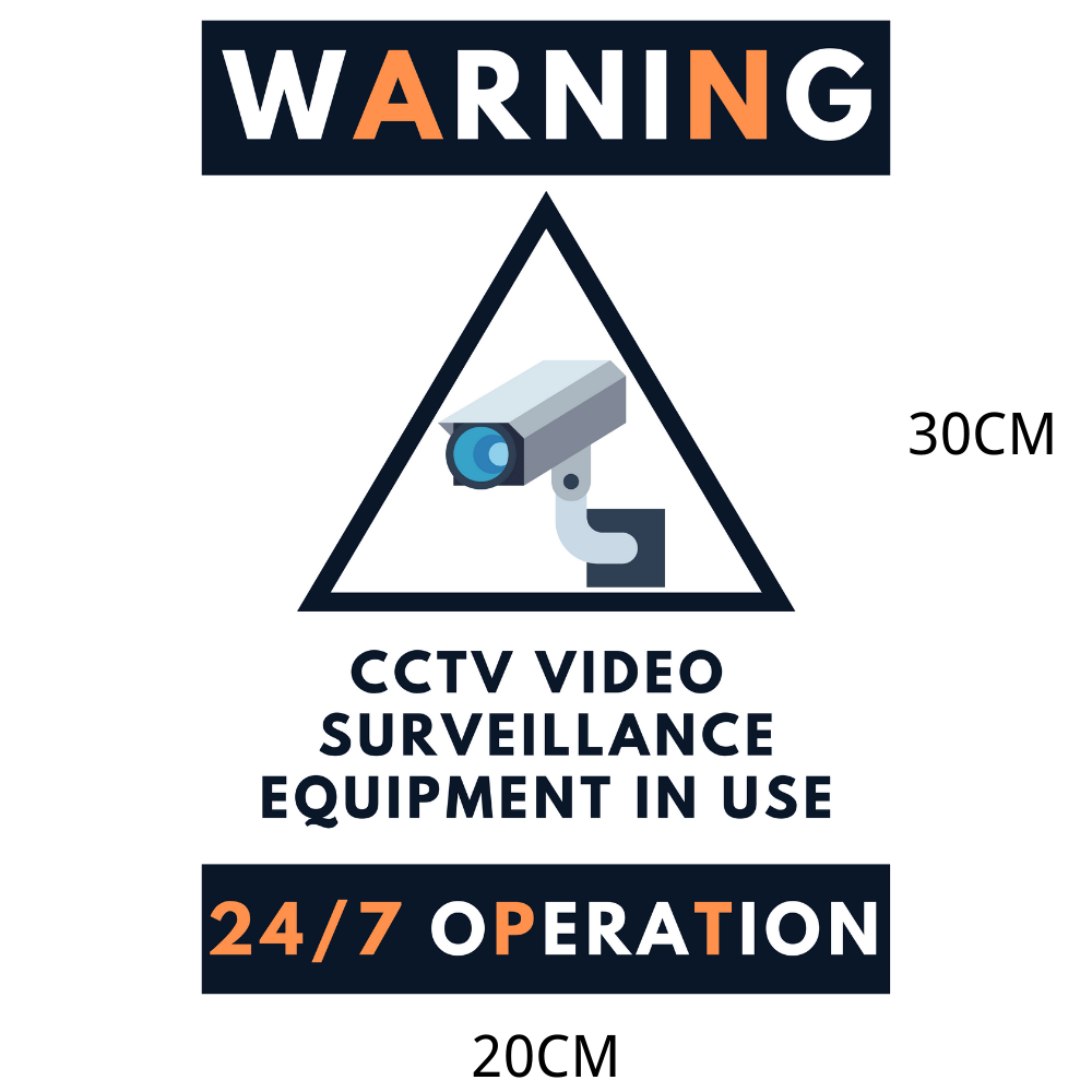 [20cm x 30cm] Security Camera CCTV Surveillance 24/7 Monitor Warning Waterproof PVC Sign Wall Window Office Door Sticker