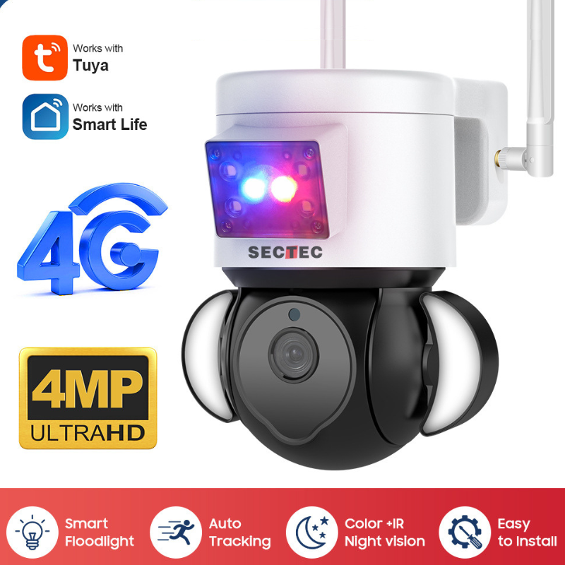[TUYA Smart Home][4G Version][With Flood Light] Full HD 4MP Wireless WIFI Full Color Day & night IP65 Outdoor PTZ Security Camera