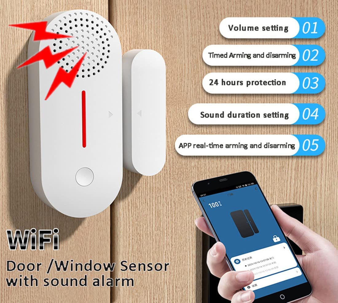 [TUYA Smart Home][Built-in Siren] Battery Powdered Door & Window Sensor Alarm Burglary Detector Home Security