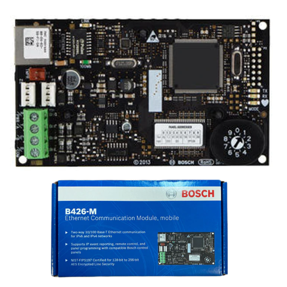 Bosch 3000 Ethernet Communication Module Model - B426M IP Module for Smartphone Notifications Typical applications include: Reporting and path supervision... Read more